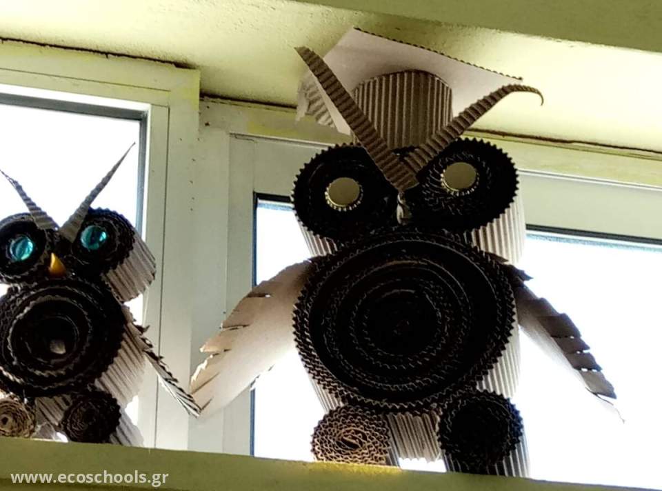 Μια νέα δημιουργία διακοσμεί πλέον τον χώρο του σχολείου μας ,μια σκέψη για κατασκευές με χαρτόνι μας εξελίχτηκε σε κουκουβάγιες.