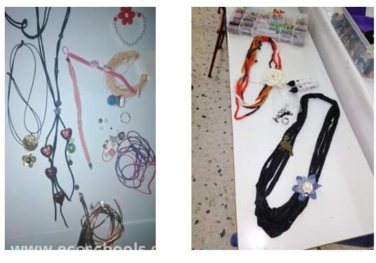 Επαναχρησιμοποίηση παλαιών-φθαρμένων ρούχων και άλλων υλικών των μαθητών για την κατασκευή κοσμημάτων. Τα κοσμήματα δωρίστηκαν στο ίδρυμα «Εστία κοριτσιού Φιλοθέη Αθηναία». Ομάδα μαθητών- γονέων και εκπαιδευτικών επισκέφτηκαν το ίδρυμα.