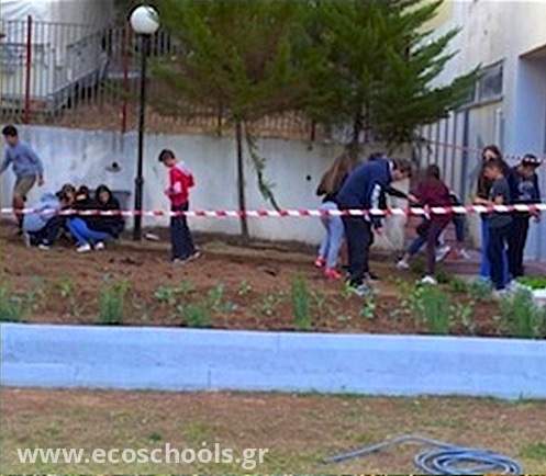 Η διαμόρφωση του κήπου στον χώρο της σχολικής μας αυλής είχε αρχίσει από το σχολ. έτος 2012-13, όταν με την καθοδήγηση του κ. Παύλου, του γυμναστή του σχολείου, οι μαθητές δημιούργησαν το δικό τους μποστάνι μέσα στον χώρο του σχολείου. Οι εργασίες άρχισαν πολύ νωρίς. Δημιουργήθηκε ένας κλειστός χώρος 11μ. x 11μ. και, αφού περίμεναν να σταματήσουν οι συχνές βροχοπτώσεις, άρχισαν στα μέσα Μαρτίου να φυτεύουν τα λαχανικά τους: 76 ρίζες ντομάτες, 40 μελιτζάνες, 30 πιπεριές όλων των ειδών, σπόρος και φυτά κολοκυθιάς, 300 μαρούλια, ραπανάκια, καρότα, σπανάκι, άνηθο, βλήτα, σέλινο και φασολάκια. Χρειάστηκαν δύο φορτηγά χώμα, περίπου 20 κυβικά, κοπριά και φυκόχωμα. Χρησιμοποιήθηκαν μόνο βιολογικά προϊόντα.