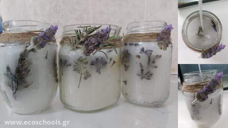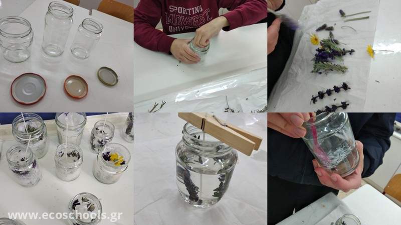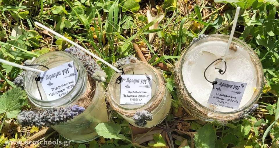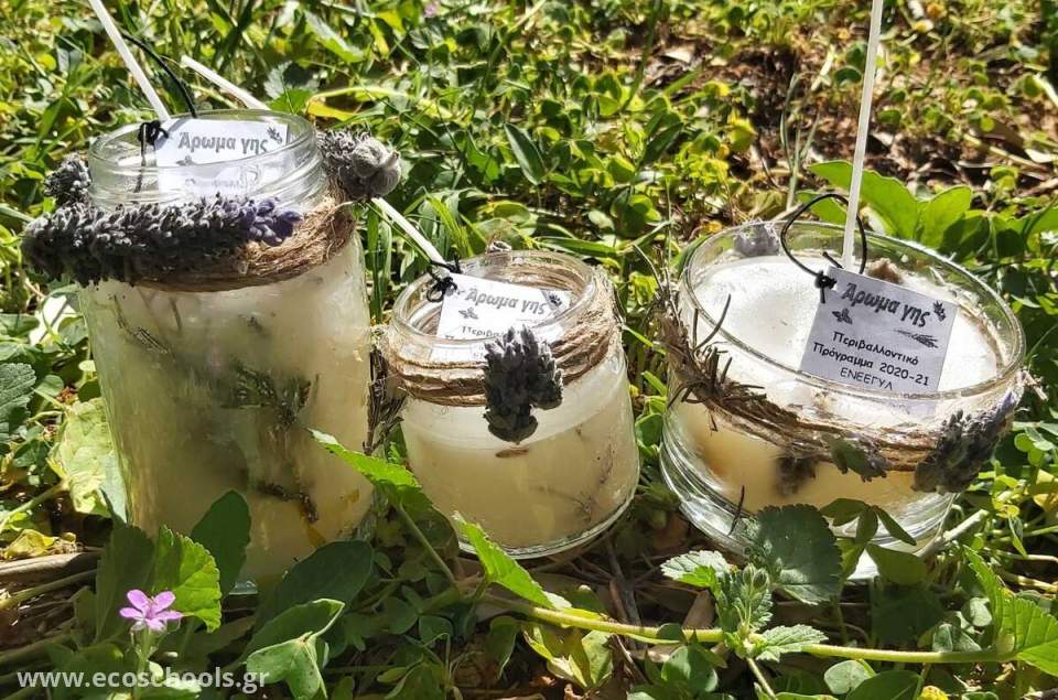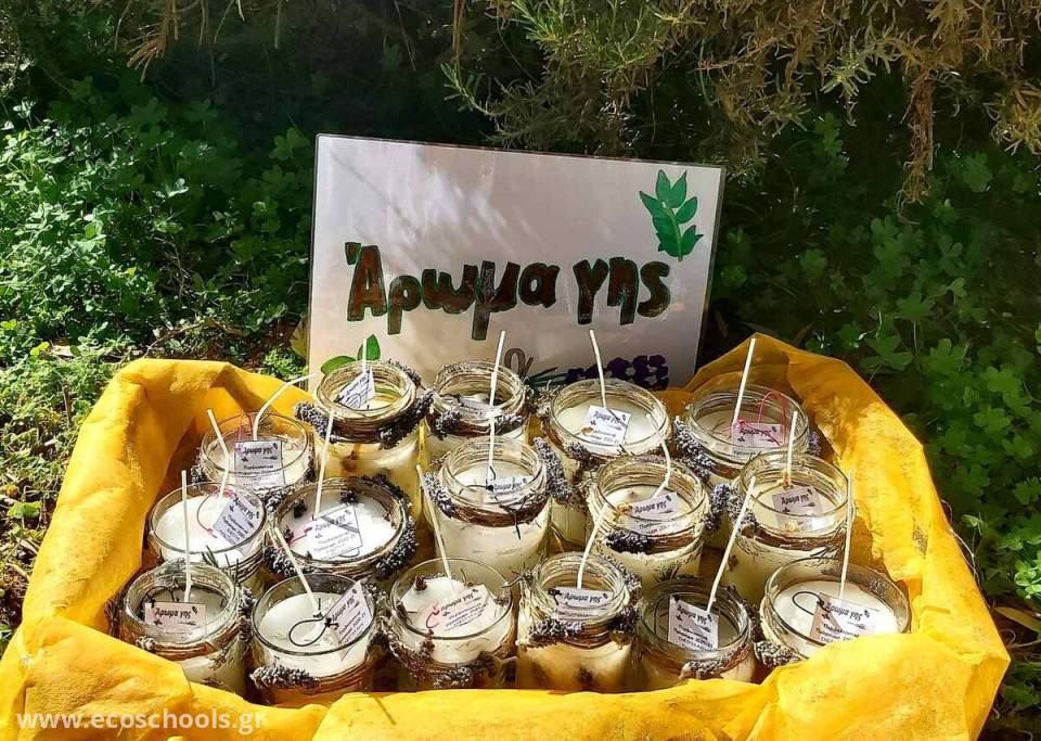 Η επιχείρησή μας «ΑΡΩΜΑ ΓΗΣ» έφτιαξε κεράκια. Οι μαθητές /τριες αξιοποίησαν γυάλινα βαζάκια (που δεν τα χρησιμοποιούσαν πλέον), τα βότανα από τον βοτανόκηπο του σχολείου μας και δημιούργησαν κεράκια ενόψει του ΠΑΣΧΑ.