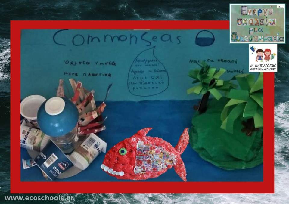 Το σχολείο μας βρίσκεται σε μία μικρή παραθαλάσσια κωμόπολη, τα Λουτρά της Αιδηψού και δε θα μπορούσε να μην ασχοληθεί με την πλαστική ρύπανση που απειλεί τις θάλασσες και τους ωκεανούς. Ανάμεσα σε διάφορες οργανώσεις που ασχολούνται με την προστασία των θαλασσών, επιλέχθηκε η CommonSeas και μαζί τους στείλαμε ηχηρό μήνυμα μέσα από μία μακέτα, με αφορμή τα νησιά που δημιουργούνται από τα πλαστικά, λέγοντας χαρακτηριστικά: "Όχι στα νησιά από πλαστικά, ναι στα καθαρά με φυσική ομορφιά"