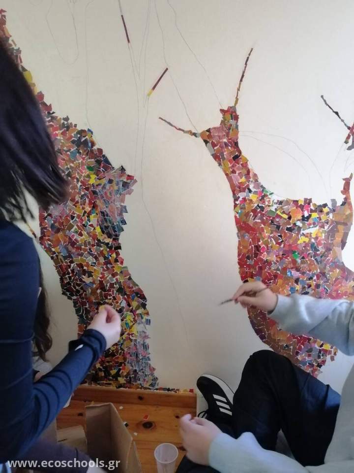 Η φύση δεν προσφέρει στον άνθρωπο μόνο μια διέξοδο στην απέραντη ομορφιά της, δεν είναι μόνο μια βόλτα στο δάσος, στην ακτή , στον κάμπο. Η φύση εμπεριέχεται στον άνθρωπο, τον γεννά, τον ανατρέφει, τον φροντίζει αλλά και τον εμπνέει με τέτοια ένταση και δύναμη, που τελικά εκβάλλει από κάθε αληθινό του κομμάτι. Εκβάλλει από την καρδιά του, από το πνεύμα, από τη φαντασία του, γίνεται δημιούργημα, γίνεται τέχνη. Η φύση γίνεται εικόνα, γίνεται γλυπτό, γίνεται ανάγκη και προέκταση του εαυτού. Τα βλαστάρια της, τα κλαδιά της, οι καρποί της γίνονται κομμάτι της ψυχής και της έκφρασης, χρώμα, άρωμα, ανάσα, ζωή. Μια ζωή με την ομορφιά, την καθαρότητα και την αγνότητα ενός ανέγγιχτου, ενός αγνού τοπίου καμωμένου από τα παιδικά χέρια. Πού; Στους τοίχους, στο εικαστικό εργαστήριο, στο προαύλιό μας, στην καρδιά, στο σχολειό μας. Από το μεγάλο σχολείο της φύσης λοιπόν, παίρνουμε όλοι μας μαθήματα ουσίας και εμπλουτίζουμε καθημερινά τη διαδικασία της μάθησης ανοίγοντας τα φτερά μας ως τους πιο μακρινούς ορίζοντες.