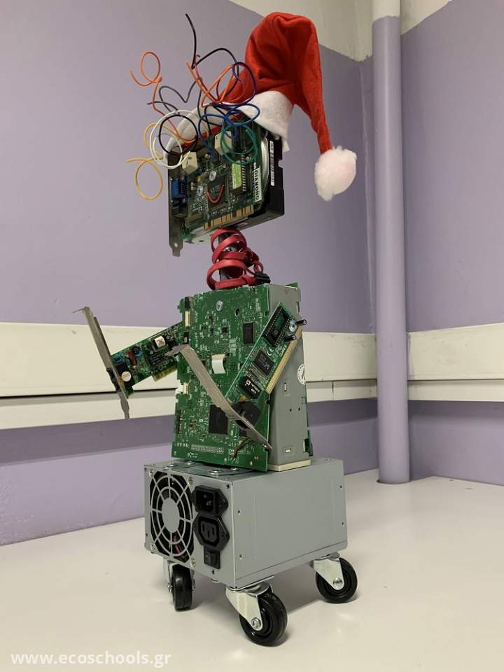 Οι μαθητές μαζί με τους εκπαιδευτικούς της πληροφορικής και των εικαστικών του σχολείου μας κατάφεραν να συνδυάσουν την τέχνη με την πληροφορική και να δώσουν ζωή σε έναν παλιό υπολογιστή. Αρχικά κατασκεύασαν χριστουγεννιάτικα στεφάνια και στη συνέχεια ένα ρομπότ το οποίο εγκαταστάθηκε μόνιμα και διακοσμεί την αίθουσα της πληροφορικής .