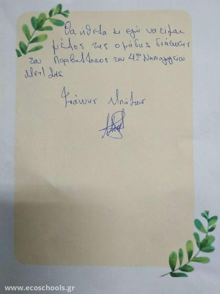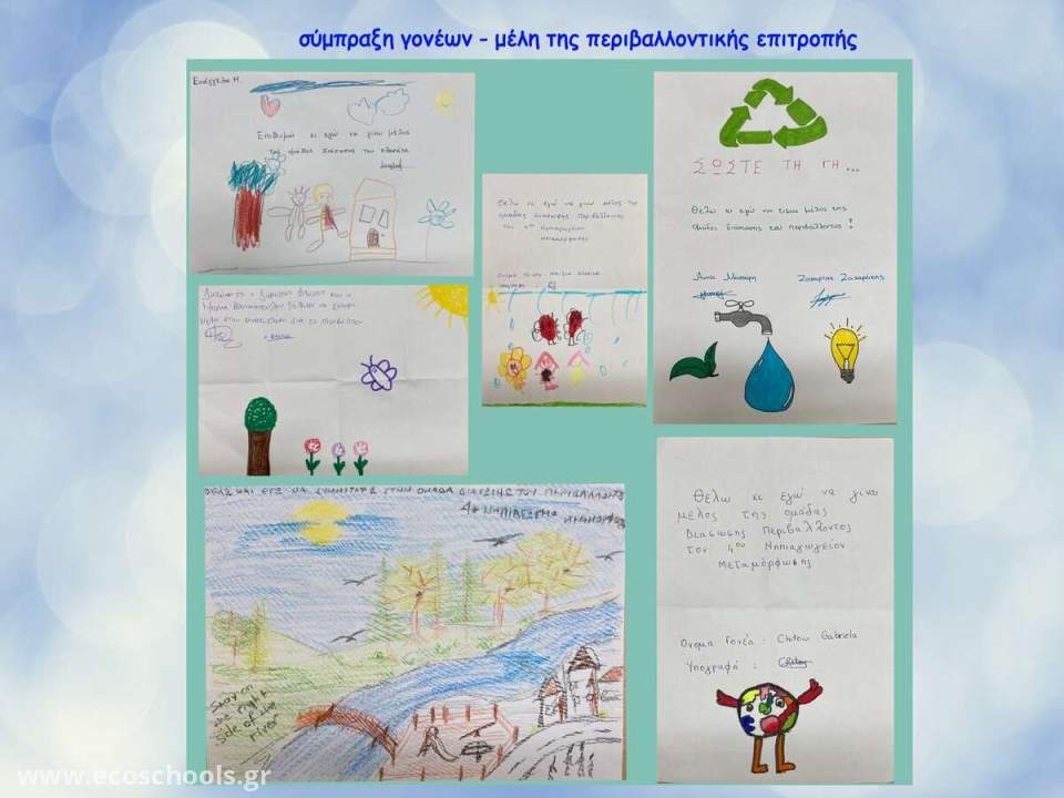 Μέλη της περιβαλλοντικής επιτροπής ''ομάδα διάσωσης του περιβάλλοντος του 4ου Νηπιαγωγείου Μεταμόρφωσης '' : Μαθητές , γονείς , εκπαιδευτικοί και φορείς της τοπικής αυτοδιοίκησης .