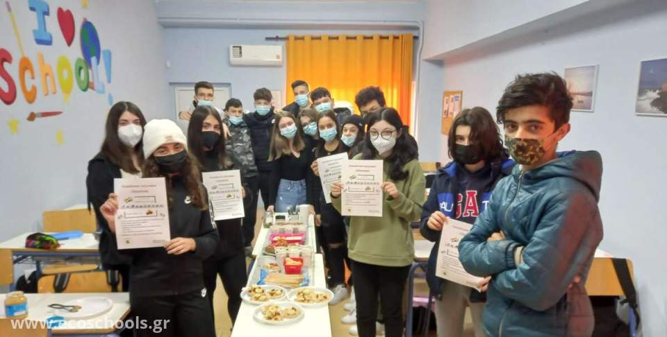 Οι μαθητές του τμήματος Α4 διοργάνωσαν μπουφέ στον χώρο του σχολείου με διάφορα υγιεινά σνακ για το σχολικό τους γεύμα. Αφού εξέθεσαν στον μπουφέ διάφορα σνακ από διαφορετικές ομάδες τροφίμων (υδατάνθρακες, πρωτεΐνες, λιπαρά, βιταμίνες), στη συνέχεια παρουσίασαν τις επιλογές τους στους συμμαθητές τους και εξήγησαν τα θρεπτικά συστατικά που περιέχουν.
