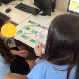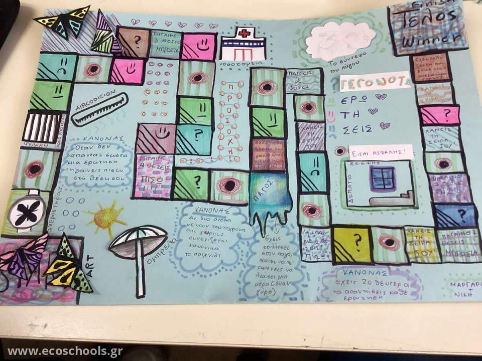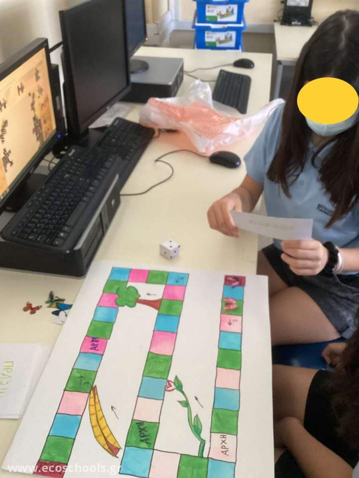 Οι μαθητές της Ε’ Δημοτικού στα πλαίσια του μαθήματος της Πληροφορικής δημιούργησαν επιτραπέζια με θέμα την ‘Κλιματική Αλλαγή’. Αρχικά έγινε η ευαισθητοποίηση των μαθητών διαμέσου συζήτησης και βίντεο για αυτό το σημαντικό περιβαλλοντικό ζήτημα. Στη συνέχεια πήραν χαρτόνια, μαρκαδόρους και ψαλίδια και δημιούργησαν τη δική τους πίστα, πιόνια και ζάρια. Το αποτέλεσμα ήταν εντυπωσιακό και οι μαθητές έμαθαν πολλά για το περιβάλλον παίζοντας παιχνίδια που δημιούργησαν οι ίδιοι.
