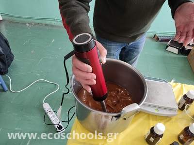 Στα πλαίσια της ένταξης του σχολείου μας στο Δίκτυο των Οικολογικών Σχολείων Ελλάδος, του 2ου Θεματικού Κύκλου των Εργαστηρίων Δεξιοτήτων με τίτλο θεματικής «Φροντίζω το Περιβάλλον» και της Παγκόσμιας Ημέρας Περιβάλλοντος στις 5 Ιουνίου, το σχολείο μας, σε συνέχεια της συνεργασίας που διατηρεί με τον υπεύθυνο του ΕΚΦΕ Αγρινίου, κο Τσοβόλα Σπυρίδωνα (βλ. https://blogs.sch.gr/17dimagr/files/2022/04/%CE%A0%CE%95%CE%99%CE%A1%CE%...), παρασκεύασε βιολογικά σαπούνια χρησιμοποιώντας πρώτες ύλες από φυσικούς ανανεώσιμους πόρους χωρίς να επιβαρύνει καθόλου το περιβάλλον και τον υδροφόρο ορίζοντα με χημικά παράγωγα. Συγκεκριμένα, οι μαθητές της Β΄ και της ΣΤ΄ Τάξης του σχολείου μας, συγκέντρωσαν τα απαραίτητα υλικά (παρθένο ελαιόλαδο, νερό, καυστική σόδα, χρώμα ζαχαροπλαστικής, αιθέρια έλαια) και ακολούθησαν με προσοχή τις οδηγίες του κου Τσοβόλα για την παρασκευή των φυσικών σαπουνιών.