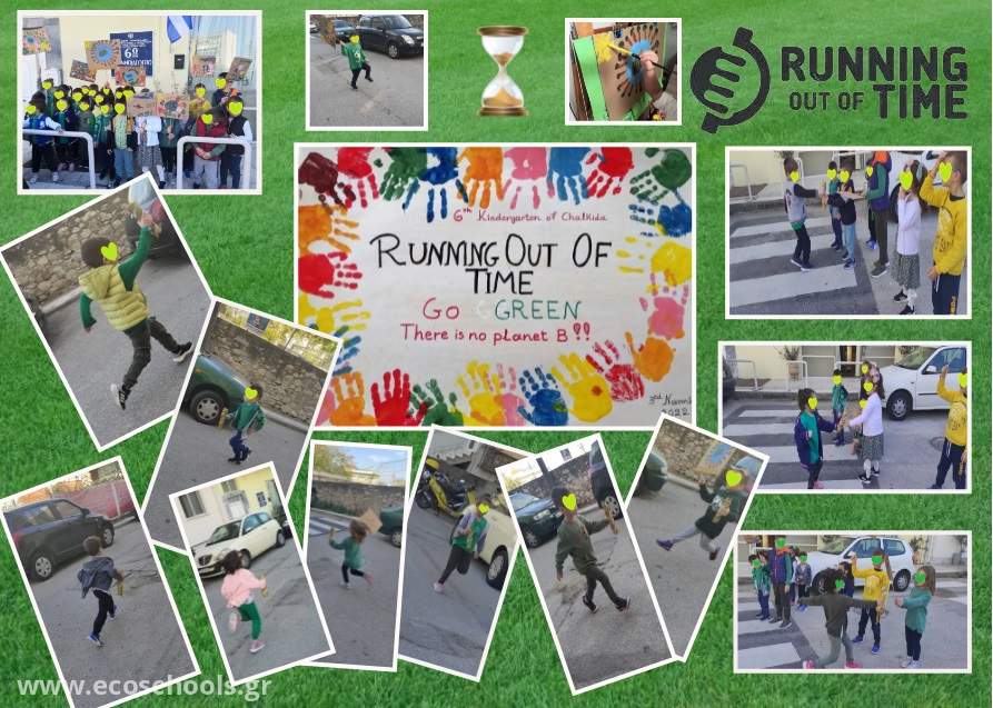 «Running Out Of Time»O χρόνος τελειώνει και εμείς…Αποφασίσαμε να γίνουμε μέρος της λύσης για το πρόβλημα της κλιματικής αλλαγής! Φτιάξαμε την δική μας σκυτάλη από ανακυκλώσιμα υλικά,ζωγραφίσαμε τα πανό μας ,γράψαμε μηνύματα για το περιβάλλον ,κάναμε τις σκυταλοδρομίες μας,μία πορεία με συνθήματα για το περιβάλλον και περνώντας υπέροχα στείλαμε το μήνυμα μας στους παγκόσμιους ηγέτες στη Σύνοδο των Ηνωμένων Εθνών για την Κλιματική Αλλαγή!Το μήνυμά μας : «Go Green.There is no planet B!»