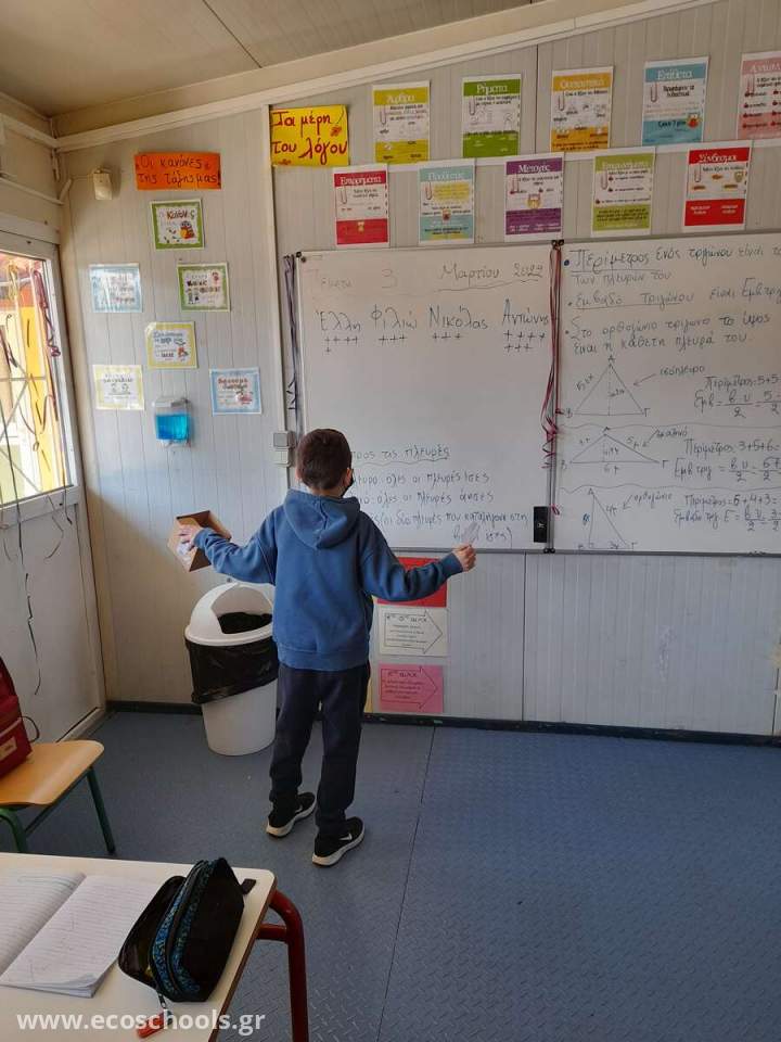 Σήμερα ,14/3/22 , έγινε η απολογιστική συνεδρίαση της Περιβαλλοντικής Ομάδας του Σχολείου μας για το 2ο τρίμηνο. Οι δημοκρατικά εκλεγμένοι/ες  μαθητές και μαθήτριες κάθε τμήματος κατάθεσαν τις εμπειρίες τους από τη συμμετοχή τους στην ομάδα. Την προηγούμενη εβδομάδα έγιναν οι εκλογές ανάδειξης των νέων μελών της εν λόγω Ομάδας ανά τμήμα. Όσο περισσότερα παιδιά παίρνουν μέρος στην Ομάδα , τόσο περισσότερα γίνονται <πράκτορες και σωτήρες > του περιβάλλοντος!