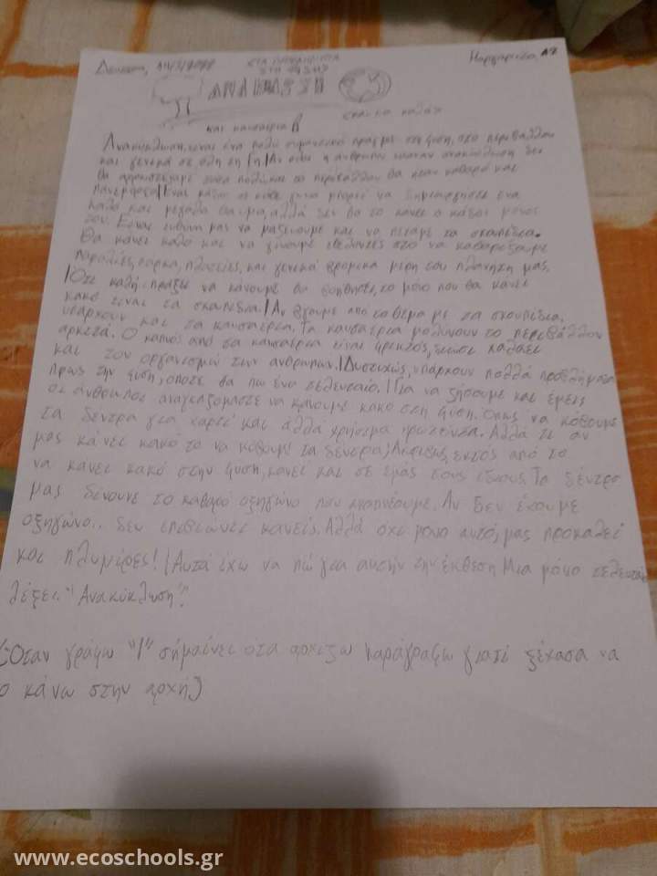 Κείμενο μαθήτριας της Δ' τάξης του Σχολείου μας.