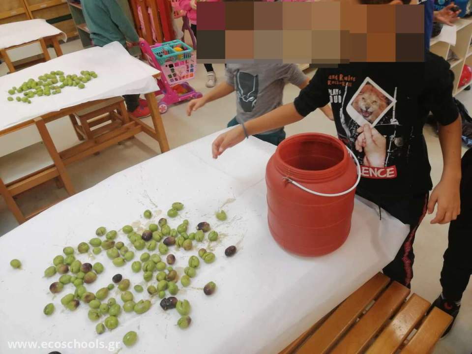 Μαζί με τα παιδιά μαζέψαμε και φέτος τις ελιές από τα δέντρα του νηπιαγωγείου μας. Οι ίδιοι οι μαθητές ρώτησαν τους γονείς τους και μας έδωσαν οδηγίες για τα βήματα που πρέπει να ακολουθήσουμε .
