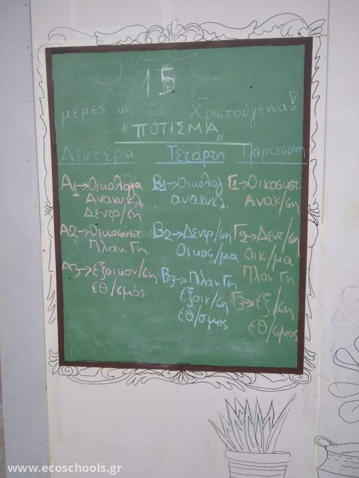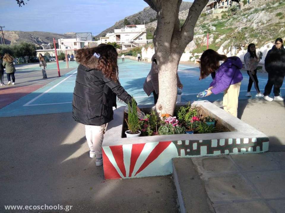 Αφού οργανωθήκαμε και μπήκαμε σε ομάδες, εβδομαδιαίως και σε τακτά διαστήματα ,τα φυτεμένα παρτέρια μας δεν μένουν χωρίς φροντίδα από τους μαθητές μας …Οργανωμένοι ανά τμήμα και ημέρα καθημερινά ξέρουν τι πρέπει να κάνουν. Οι ονομασίες για τα παρτέρια δόθηκαν από τα ίδια τα παιδιά με ορολογία που σχετίζεται με το περιβάλλον.