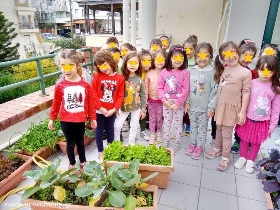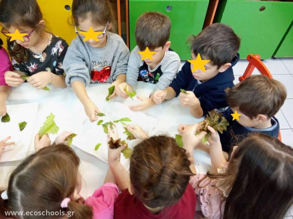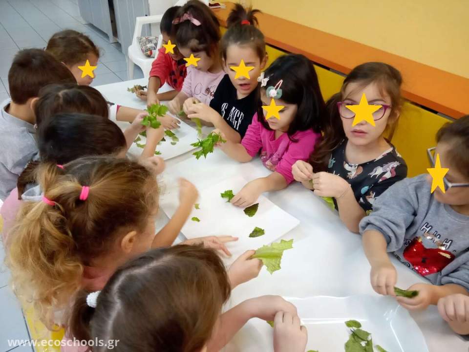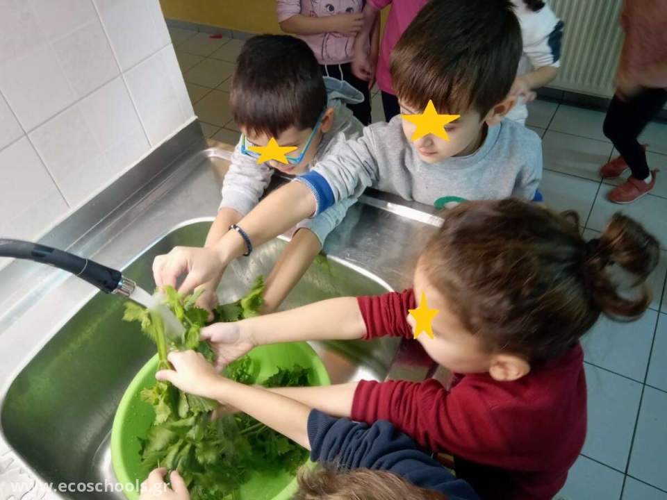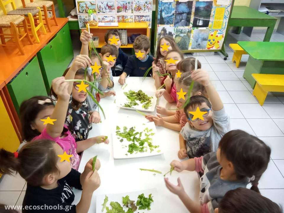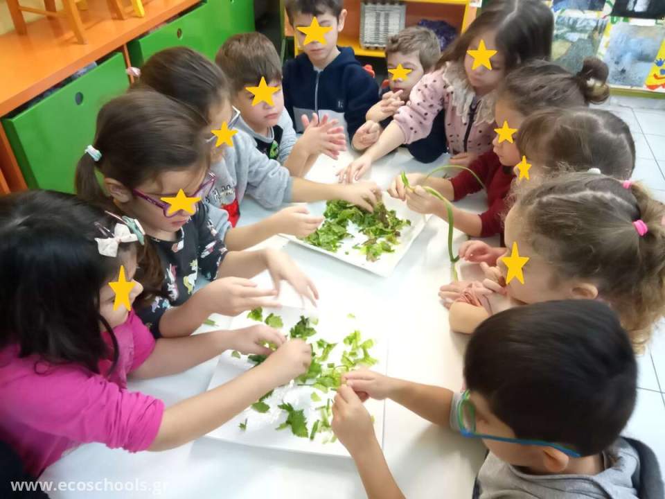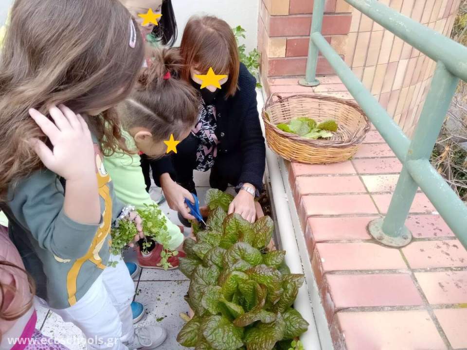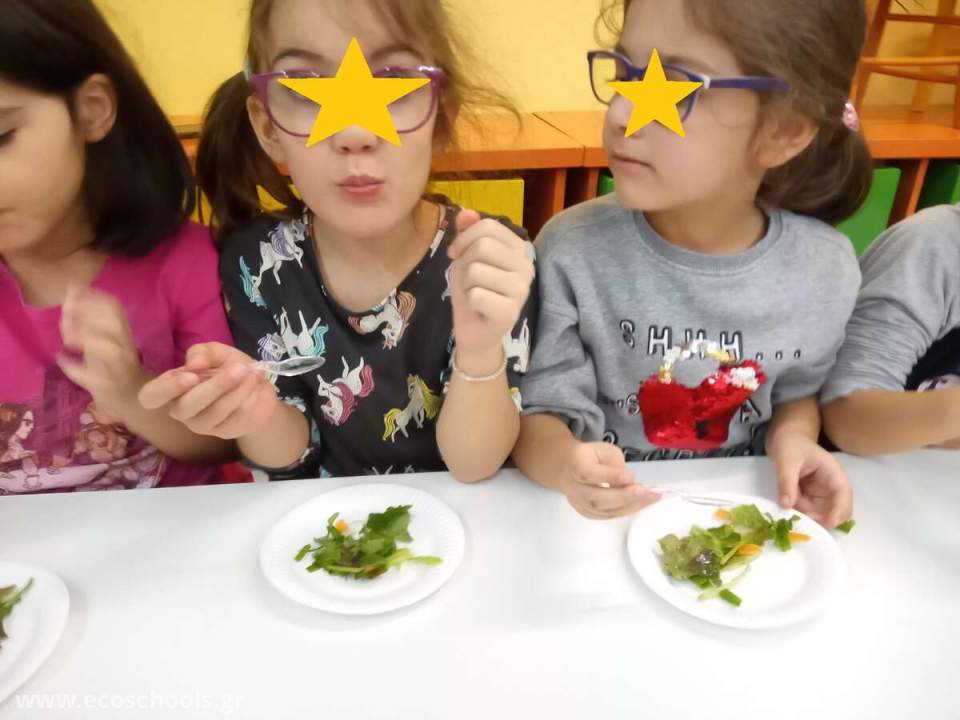 Αφού κόψαμε τα λαχανικά μας, από τον κήπο μας, φτιάξαμε την πιο νόστιμη και υγιεινή σαλάτα!