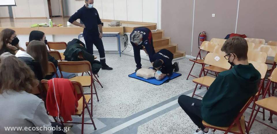 Οι μαθητές παρακολούθησαν πρόγραμμα καρδιοαναπνευστικής αναζωογόνησης (ΚΑΡΠΑ) ,χρήση απινιδωτή και αντιμετώπιση περιστατικού πνιγμού