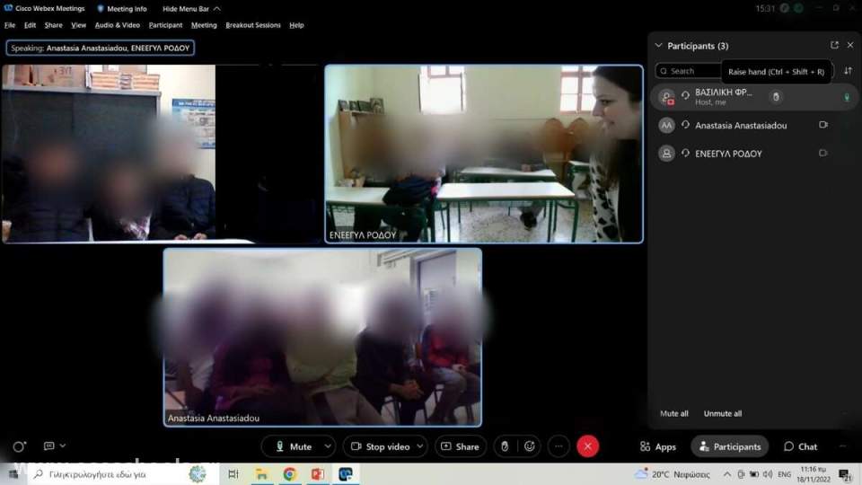 Την Παρασκευή 18 Νοεμβρίου πραγματοποιήθηκε διαδικτυακή επικοινωνία με το 2ο ΕΝΕΕΓΥΛ Θεσσαλονίκης και το ΕΝΕΕΓΥΛ της Νάξου, στο πλαίσιο του περιβαλλοντικού προγράμματος σχολικών δραστηριοτήτων «Γνωρίζω για τη χλωρίδα και την πανίδα του τόπου μου». Οι μαθητές γνωρίστηκαν μεταξύ τους και στη συνέχεια το κάθε σχολείο από την πλευρά του παρουσίασε τον προγραμματισμό του περιβαλλοντικού προγράμματος που θα υλοποιήσει την φετινή χρονιά. Η δράση αποσκοπεί στη δημιουργία ενός δικτύου συνεργασίας, με στόχο την ανταλλαγή απόψεων και εμπειριών σχετικά με την προστασία του περιβάλλοντος και γενικότερα την Αειφορία.