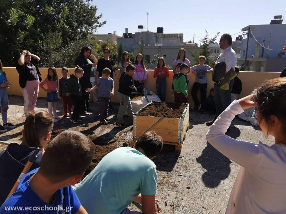 Οι εργασίες διαμόρφωσης του χώρου ξεκίνησαν άμεσα, με την αμέριστη συνδρομή γονέων του σχολείου μας, καθώς και της Τοπικής Αυτοδιοίκησης, η οποία κάλυψε οικονομικά την αγορά απαιτούμενων υλικών (χώματα και λιπάσματα, καθώς και τη μεταφορά αυτών στο σχολείο μας). Τα υλικά ήρθαν στο σχολείο στις 3/11/2022.