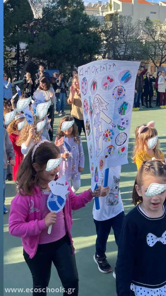 Ακόμη μια χρονιά η επέτειος του Πολυτεχνείου αποτέλεσε αφορμή για συζήτηση γύρω από τη Δημοκρατία. Κάθε τμήμα του σχολείου μας έφτιαξε το δικό του ξεχωριστό πανό και με τα περιστέρια - σύμβολα της Ειρήνης στα χέρια οι μαθητές/τριες πραγματοποίησαν πορεία Ειρήνης την 17η Νοεμβρίου στον προαύλιο χώρο του σχολείου μας, παρουσία των γονέων των μαθητών/τριών.