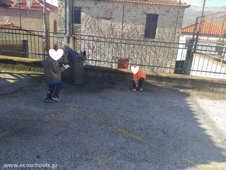 Συζητήσαμε για τα σκουπίδια και την ανακύκλωση .Τι είναι η ανακύκλωση; Πως λειτουργεί ο μπλε κάδος; Τι άλλο μπορούμε να ανακυκλώσουμε; (π.χ. μελάνια, λάμπες, ηλεκτρικές και ηλεκτρονικές συσκευές, ρούχα, μπαταρίες, γυάλινα μπουκάλια). Αποφασίσαμε να ελέγξουμε αν υπάρχουν σκουπίδια στον αυλή του σχολείου μας και να τα μαζέψουμε πετώντας τα στους κάδους ή αν είναι ανακυκλώσιμα στους αντίστοιχους κάδους της ανακύκλωσης.