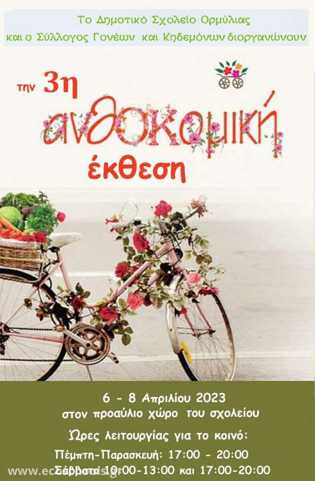 3η Ανθοκομική Έκθεση, 6-8 Απριλίου 2023, στο Δημοτικό Σχολείο Ορμύλιας