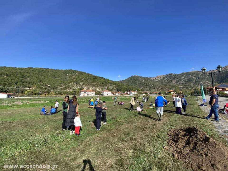 Οι μαθητές/τριες, οι εκπαιδευτικοί, οι γονείς, ακόμα και οι παππούδες με την καθοδήγηση των υπευθύνων του ΕΚΕΤΑ, φύτεψαν 160 δέντρα διαφόρων ειδών στον χώρο πέριξ του γηπέδου του χωριού, αλλά και στην αυλή του σχολείου μας.