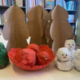 Επειδή στο χώρο της Βιβλιοθήκης υπήρχαν πολλά κομμάτια χαρτιού του μέτρου που περίσσεψαν από άλλες κατασκευές προτάθηκε να δημιουργηθούν χριστουγεννιάτικα δέντρα για να στολίσουν τα τραπέζια του χώρου.