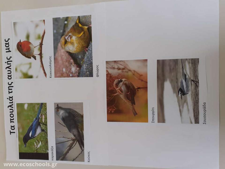 Το Νηπιαγωγείο μας επισκέπτονται καθημερινά αρκετά πουλιά ,μιας και η αυλή μας έχει πολλά δέντρα. Τα παιδιά έδειξαν ιδιαίτερο ενδιαφέρον για τους μικρούς μας επισκέπτες κι έτσι αποφασίσαμε να τους γνωρίσουμε καλύτερα. Τα παιδιά ανέλαβαν να συγκεντρώσουν πληροφορίες και φωτογραφικό υλικό με τη βοήθεια των γονιών τους .Στη συνέχεια θελήσαμε να παρατηρήσουμε τα πουλιά που επισκέπτονται την αυλή μας, γι αυτό πολύ ήσυχα βγήκαμε στην αυλή και χρησιμοποιήσαμε μια «λαλίτσα» για να τα καλέσουμε.