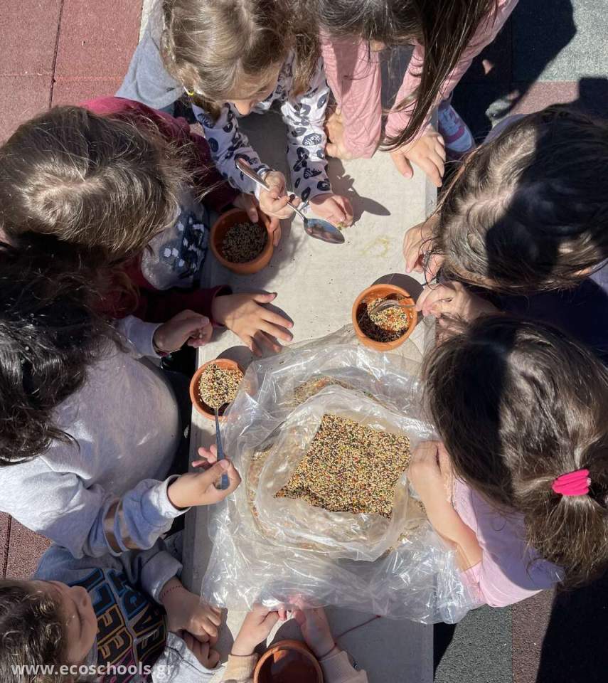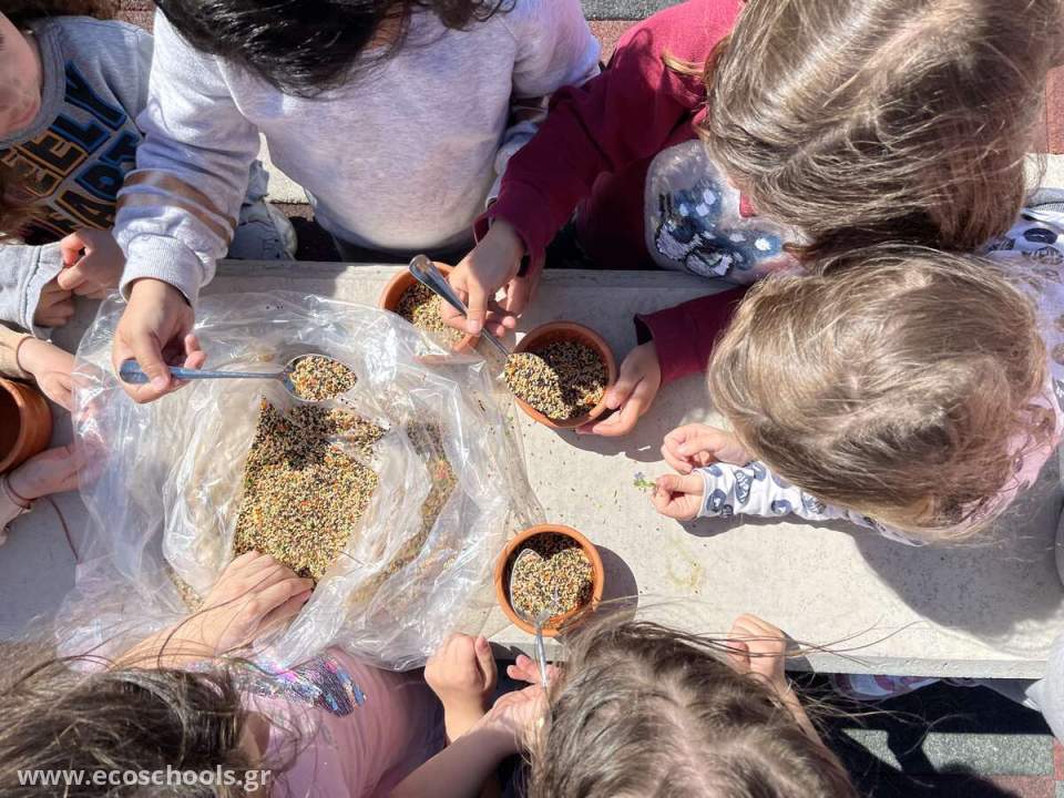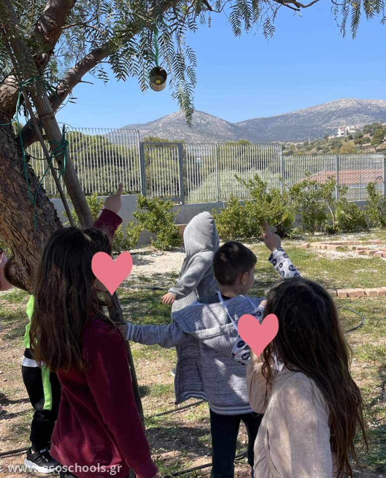Τα παιδιά παρατήρησαν και συζήτησαν με τους συμμαθητές τους για τη σημασία της φροντίδας των ταϊστρών των πουλιών της αυλής μας. Αποφάσισαν ότι η φροντίδα τους είναι σημαντική για να διατηρηθεί η υγεία και η ευημερία των πουλιών. Έτσι, ανέλαβαν δράση, με το να τις καθαρίζουν και να τις γεμίζουν με φρέσκο νερό και τροφή.