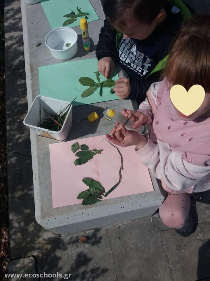 Με φυσικά υλικά όπως φύλλα και λουλούδια που μάζεψαν τα παιδιά στην αυλή του νηπιαγωγείου μας δημιούργησαν τα δικά τους έργα τέχνης. Αφού επέλεξαν με προσοχή τα υλικά τους χρησιμοποίησαν τη φαντασία τους και τη δημιουργικότητά τους και όταν ολοκλήρωσαν τα έργα τους τα παρουσίασαν με μεγάλη χαρά στους συμμαθητές τους.