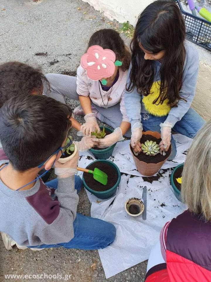 Οι μαθητές του Ομίλου Σχολικού Κήπου για δύο συνεχόμενες χρονιές μεταφύτευσαν σε γλάστρες παχύφυτα για να πουληθούν στο παζάρι του Συλλόγου Γονέων. Φέτος μεταφύτευσαν και αλεξανδρινά!