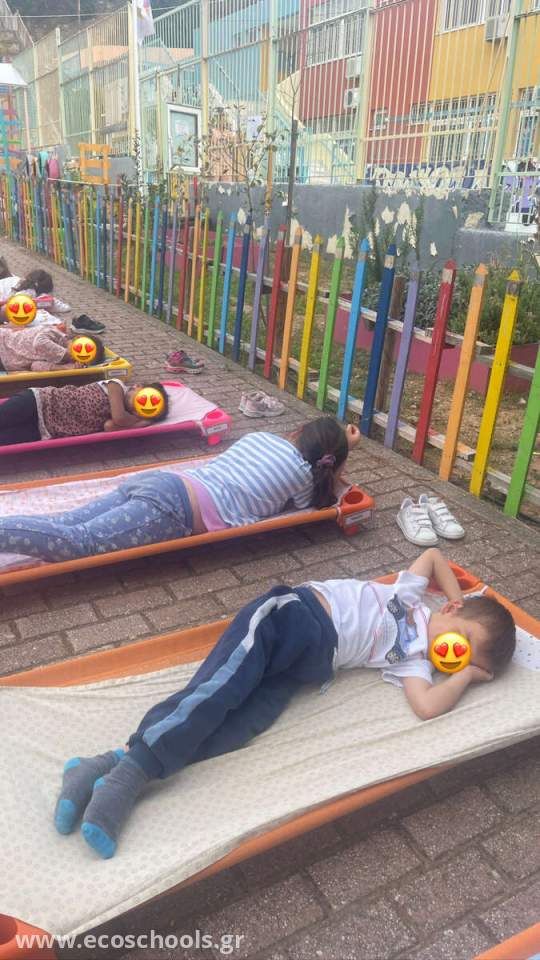 - Ξεκουραστήκαμε στο Ολοήμερο την ώρα του ύπνου, βγάζοντας τα κρεββάτια μας στην αυλή.