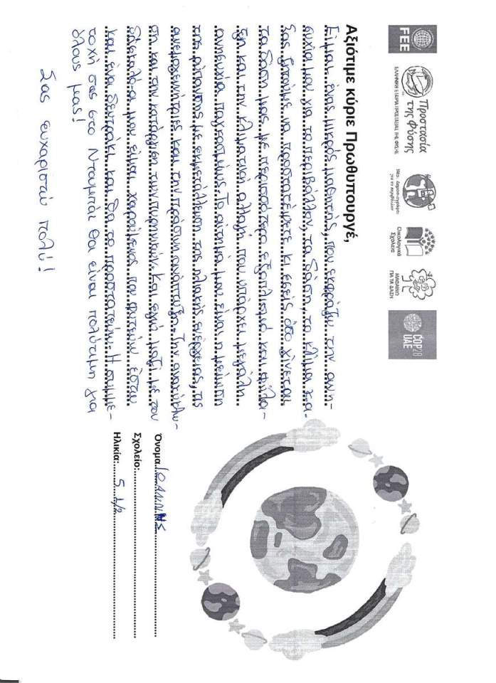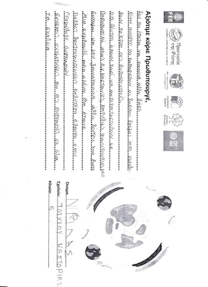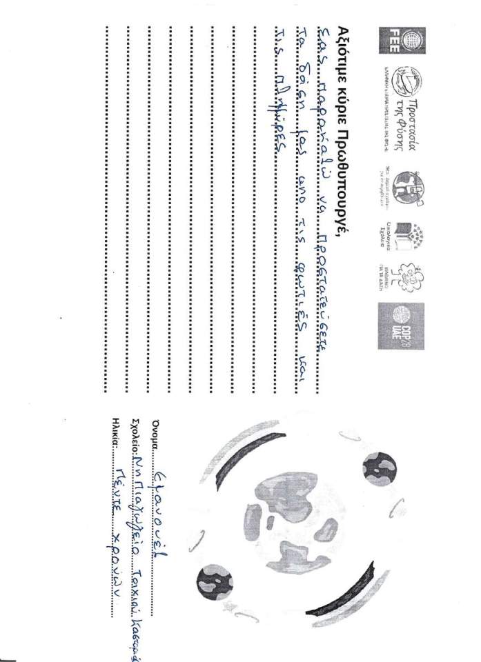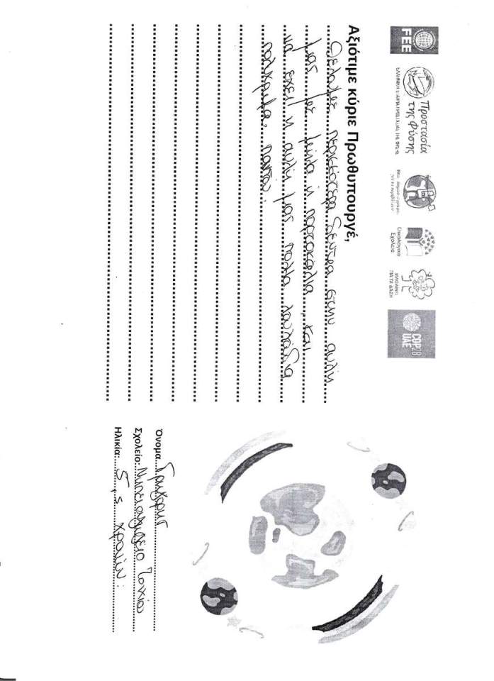 Tα παιδιά παίρνουν τον λόγο για το περιβάλλον, γράφοντας ένα αίτημα, μία ανάγκη, ένα συμπέρασμα, μία ευχή, μία συμβουλή σε σχέση με το περιβάλλον και την κλιματική αλλαγή, προς τον Πρωθυπουργό.