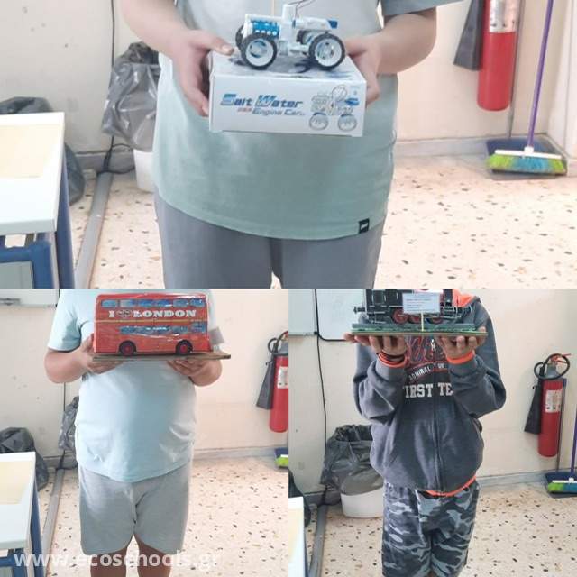 Στη συνέχεια, οι κατασκευές των μαθητών/τριών παραχωρήθηκαν στους μαθητές και άλλες τοποθετήθηκαν σε προθήκες του σχολείου έτσι όλη η σχολική κοινότητα να έχει την ευκαιρία να τις θαυμάσει!