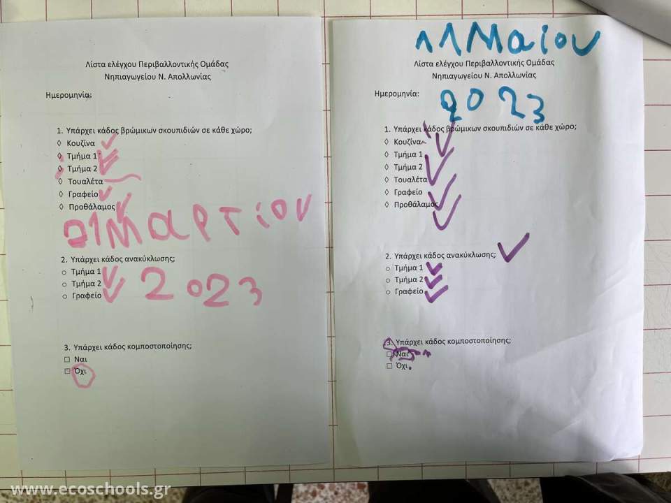 2. λίστα ελέγχου σχετικά με τη διαχείριση απορριμμάτων του σχολείου μας