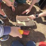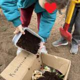 6. κατασκευή δικού μας κομποστοποιητή με σκάψιμο, ξύλινο και χαρτοκουτένιο περίβλημα και ταμπέλας που υποδεικνύει τη θέση του