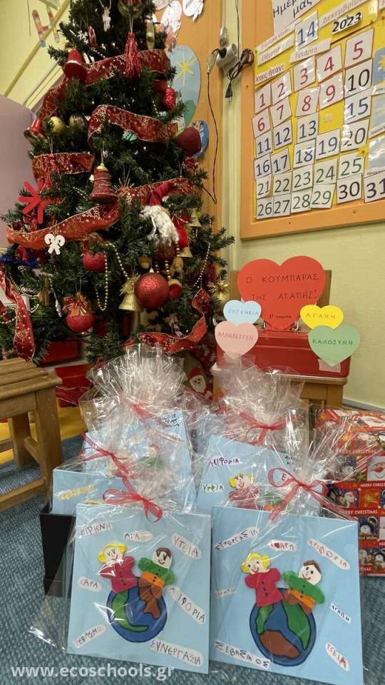 Στα πλαίσια των δραστηριοτήτων της της κοινωνικής προσφοράς αλλά και του Β΄μέρους για την Ημέρα Καλοσύνης που διοργανώθηκε από τις εκπ/κούς το Νοέμβριο και ολοκληρώνεται με τις δράσεις του Δεκεμβρίου για τα Χριστούγεννα, οι μαθητές/τριες συγκεντρώσουν χρήματα στον κουμπαρά της Αγάπης των τμημάτων με την πώληση των ημερολογίων, που έφτιαξαν για τους γονείς τους. Tα χρήματα θα προσφερθούν στο Κέντρο Βρεφών "Η Μητέρα" για τις ανάγκες των παιδιών που υποστηρίζονται από το φορέα.