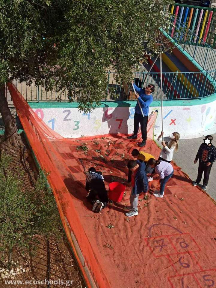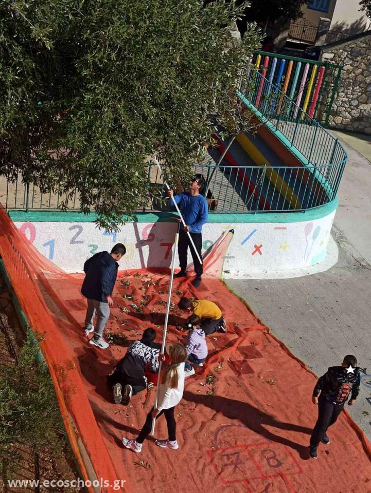 Στο πλαίσιο του προγράμματος «Οικολογικά Σχολεία», την Τετάρτη 9 Νοεμβρίου 2022, οι μαθητές και οι μαθήτριες της Ε΄ και της Στ΄ τάξης του σχολείου μας με την καθοδήγηση των εκπαιδευτικών Νίκου Γρηγόριου, Άννας Χριστοδούλου, Αντωνίας Καραλεξίδου, Μαρίας Ζαγοριανού και Ολυμπίας Δεληγκάρη, συνέχισαν τη μακρά παράδοση του 5ου Δ.Σ. Πόλεως Καλύμνου στη συγκομιδή και συσκευασία της ελιάς, από τα ελαιόδεντρα που καλλιεργούμε στο χώρο του σχολείου μας χρησιμοποιώντας βιολογικό λίπασμα που παράγουμε στον κομποστοποιητή μας.. Συγκεκριμένα, μαθητές και μαθήτριες με την παραδοσιακή μέθοδο του ραβδισμού με πλαστικές χτένες και ειδικά δίκτυα (ελαιόδιχτα) που έστρωσαν κάτω από τα δέντρα, επιδόθηκαν στο τίναγμα των ώριμων πλέον καρπών των ελαιόδεντρων που βρίσκονται στον αύλειο χώρο του σχολείου.