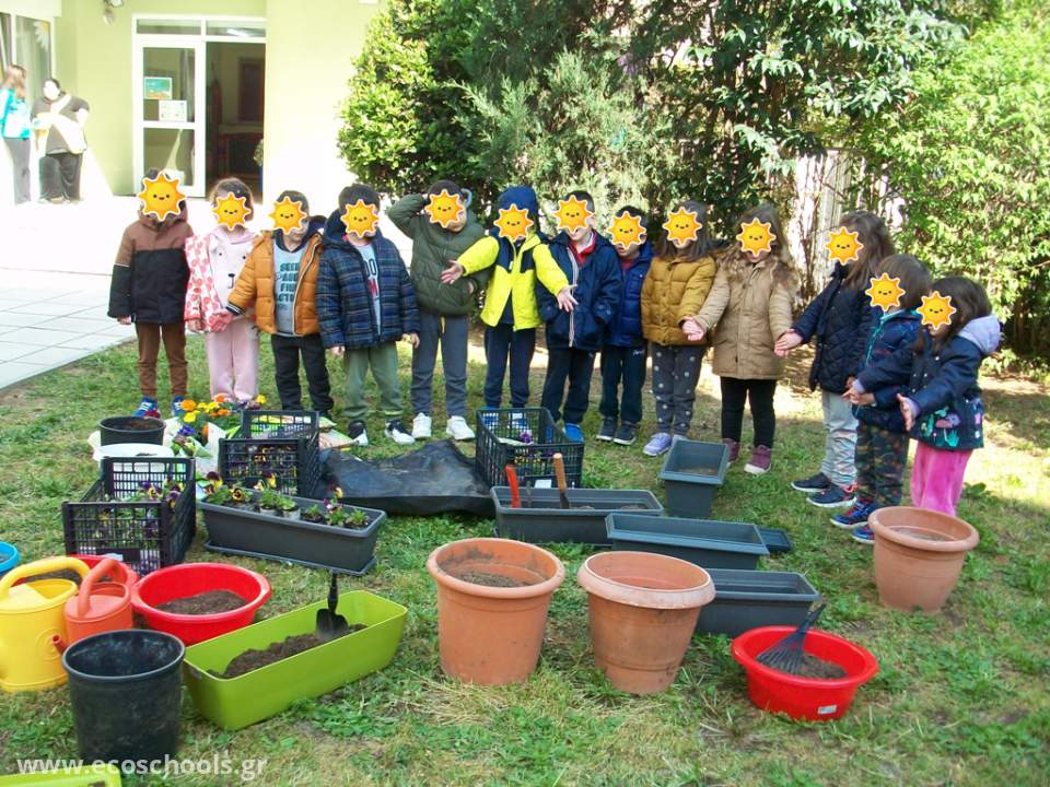 Στο πλαίσιο υλοποίησης του Σχεδίου Δράσης «Μαθαίνω και δημιουργώ στην αυλή του σχολείου μου» και στοχεύοντας στην αναβάθμιση και αξιοποίηση της σχολικής αυλής, προχωρήσαμε στις αρχές Απριλίου -σε πρώτη φάση- στη φύτευση λουλουδιών σε γλάστρες από τα παιδιά, που τοποθετήθηκαν σε σημεία της αυλής. Η δράση πραγματοποιήθηκε σε συνεργασία με το συστεγαζόμενο 21ο Νηπιαγωγείο Θεσσαλονίκης. Τα παιδιά συμμετείχαν με ενθουσιασμό και χαρά στη δράση και ανέλαβαν τη φροντίδα των λουλουδιών. Η προσπάθεια υποστηρίχτηκε από υπηρεσίες του Δήμου (προμήθεια φυτών-λουλουδιών), από κατάστημα/συνεργείο ελαστικών (προσφορά μεταχειρισμένων ελαστικών) και φυσικά από τους γονείς (λουλούδια – γλάστρες), οι οποίοι θα συμμετέχουν ενεργά στη δεύτερη φάση της δράσης για την αναβάθμιση της αυλής του νηπιαγωγείου. Τους ευχαριστούμε όλους θερμά!!!