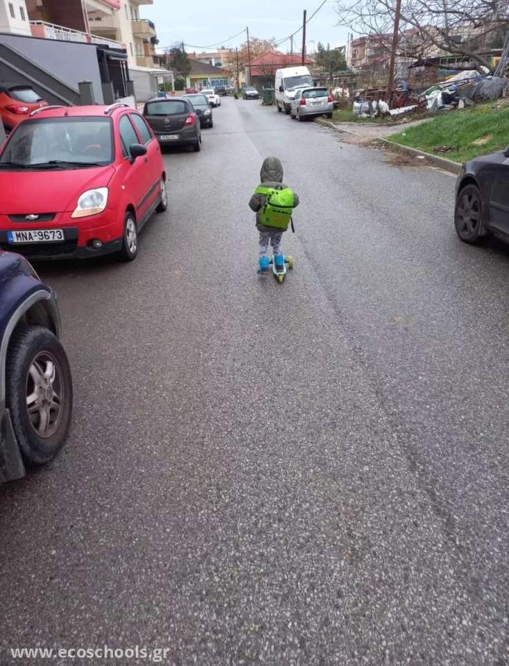 Κάθε Παρασκευή λοιπόν έρχονται στο νηπιαγωγείο με τα πόδια, το ποδήλατο ή το πατίνι τους. Και δεν τους πτοεί ούτε ο καιρός.