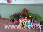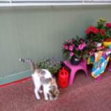 Απέξω από την τάξη μας, πρασινάδες και λουλούδια! Νάτη και η γατούλα που έχουμε υιοθετήσει! Η Σουλίτσα μας!