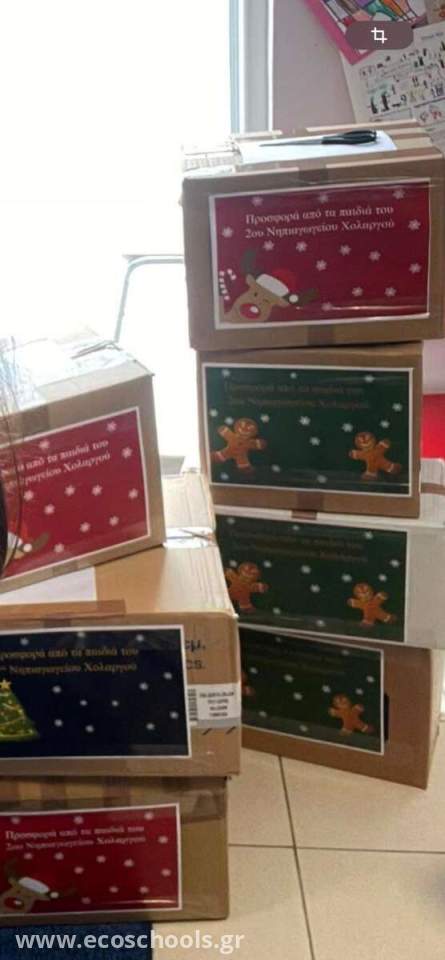 Σε συνεργασία με την Αντιδήμαρχο Κοινωνικής Πολιτικής, Νεολαίας και Προώθησης της Απασχόλησης του Δήμου-Παπάγου Χολαργού κ.Μαρία Αθανασάκου-Μουντάκη συγκεντρώθηκαν από όλη τη σχολική κοινότητα του Νηπ/γείου μας αλλά και από το Σύλλογο Γονέων και Κηδεμόνων του Ά Βρεφονηπιακού Σταθμού Χολαργού πολλά αγαθά, όπως παιχνίδια και γλυκίσματα, που αγοράστηκαν, προσφέρθηκαν αλλά και ετοίμασαν οι ίδιοι οι μαθητές του Νηπιαγωγείου μας, όπως μπισκότα και λαχταριστά τρουφάκια για τα παιδάκια των ευπαθών οικογενειών του Παντοπωλείου του Δήμου Παπάγου- Χολαργού.