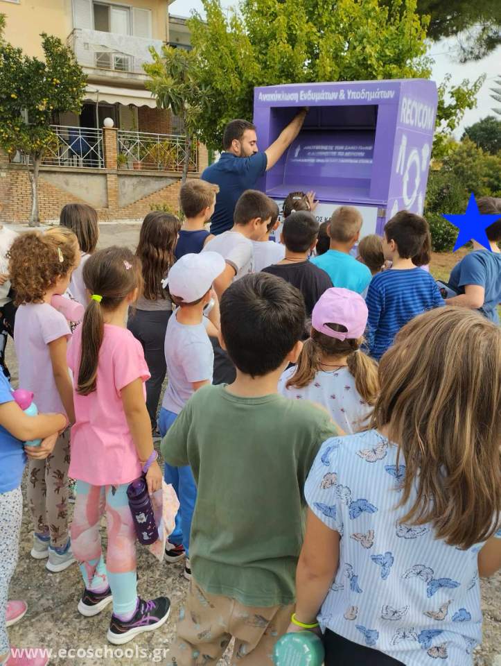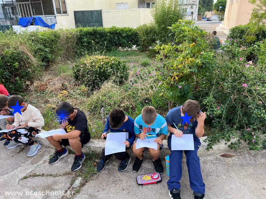 Οι μαθητές της Α’ τάξης και του Γ’2 τμήματος του σχολείου μας ξεκίνησαν τις δράσεις της πρώτης χρονιάς συμμετοχής του σχολείου μας στο πρόγραμμα «Οικολογικά Σχολεία». Έτσι, πραγματοποίησαν περίπατο στη γειτονιά του σχολείου μας και ιδιαίτερα στην παιδική χαρά που υπάρχει δίπλα αφού χαρτογράφησαν τις περιοχές που υπάρχουν κάδοι σύμμεικτων απορριμμάτων και ανακύκλωσης, τα μεγαλύτερα παιδιά "υιοθετώντας" και βοηθώντας τα μικρότερα συμπλήρωσαν το αρχικό ερωτηματολόγιο που δημιούργησε η Οικολογική Επιτροπή του σχολείου μας σχετικά με το πως βλέπουν τα παιδιά τα απορρίμματα εντός σχολικού χώρου, το πως συμπεριφέρονται και διαχειρίζονται αυτά και πως περιγράφουν τη σχολική μας αυλή.