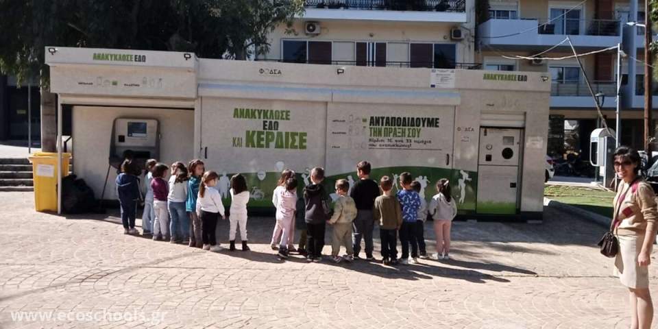 Τον Μάρτιο πραγματοποιήθηκε η δεύτερη επίσκεψη σε σπιτάκι ανταποδοτικής ανακύκλωσης του Δήμου μας. Η δράση πλέον αφορά και τα 4 νηπιαγωγεία που συστεγαζόμαστε κι έτσι το ποσό που μαζεύεται από την εξαργύρωση των κουπονιών είναι αξιόλογο. Τα σχολεία επισκέπτονται εκ περιτροπής τα σπιτάκια του Δήμου έτσι ώστε όλοι οι μαθητές να γνωρίσουν τη διαδικασία. Με τα χρήματα που εξοικονομούνται καθώς κι εκείνα του χριστουγεννιάτικου bazaar, θα αγοράσουμε ένα ξύλινο παιχνίδι για την αυλή μας. Έτσι ο κόπος μας θα αμειφθεί. Πέρα από το γεγονός ότι όλα τα παιδιά έχουν πια μάθει να συλλέγουν σωστά τόσο τα πλαστικά μπουκάλια όσο και τα καπάκια τους που αποστέλλονται στο Σύλλογο Παραπληγικών και Κινητικά Ανάπηρων Πέλλας.
