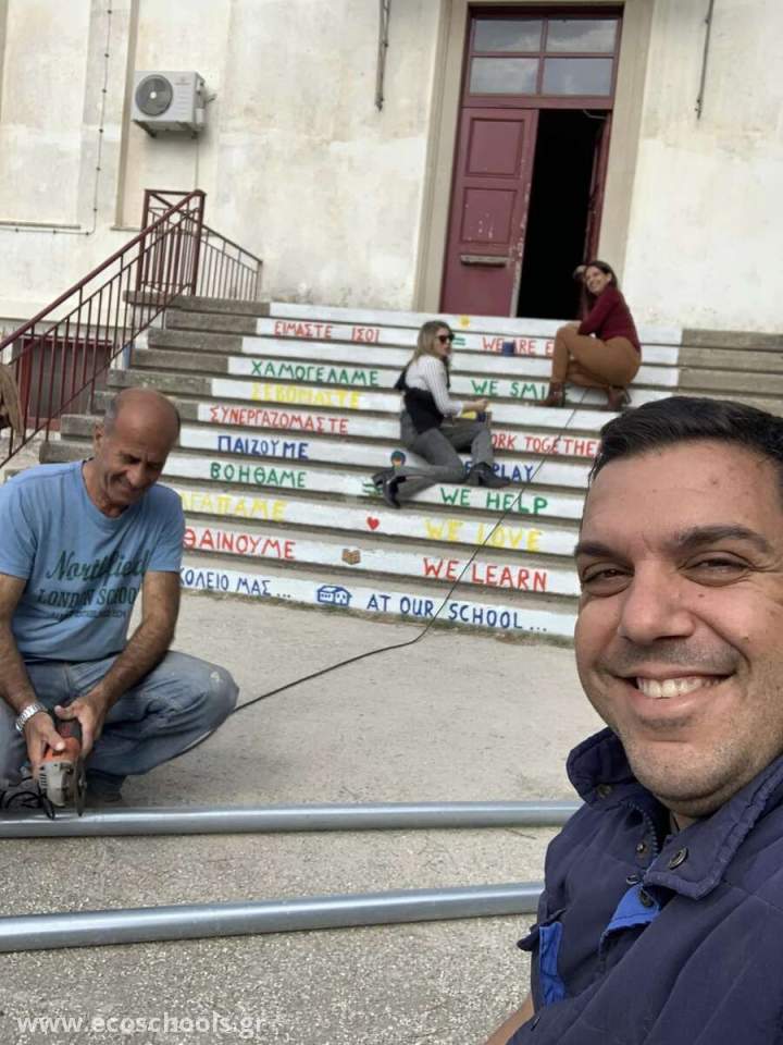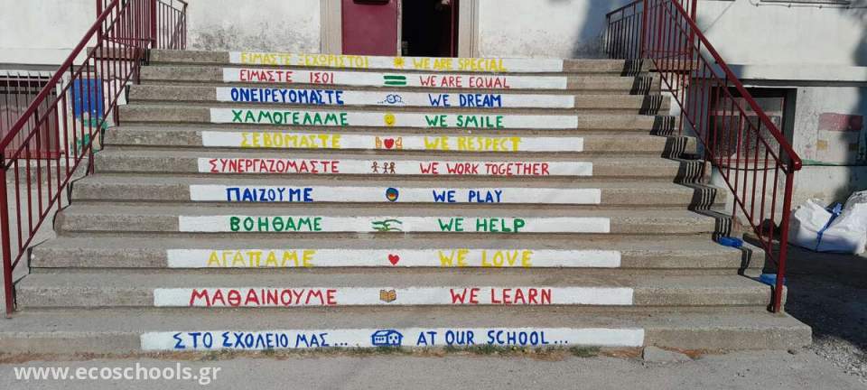 Οι μαθητές μας επέλεξαν κοινωνικά μηνύματα τόσο στην ελληνική όσο και στην ελληνική γλώσσα. Έπειτα, μαθητές κι εκπαιδευτικό προσωπικό έβαψαν τις εξωτερικές σκάλες του σχολείου μας και τις διακόσμησαν με τα μηνύματα κοινωνικής ενσυναίσθησης.