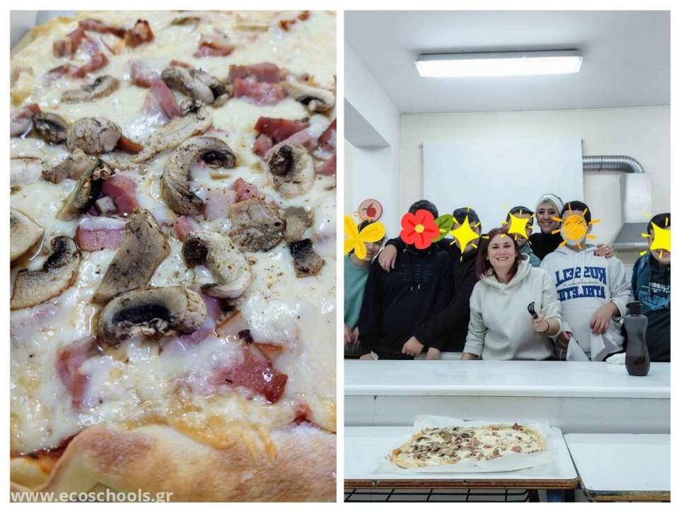 Οι μαθητές εξοικειωμένοι πλέον με το εργαστήριο μαγειρικής συμμετείχαν σε όλα τα στάδια παρασκευής της πίτσας και βεβαίως δεχτήκαμε με χαρά τη βοήθεια από τις συναδέλφους του Ειδικού βοηθητικού Προσωπικού, Ατζεμιάν Μαργαρίτα και ΑνδριτσογιάννηΑλεξάνδρα- Αγγελική.