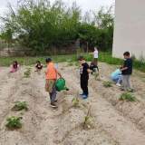 Αφού έγινε η προετοιμασία του εδάφους ( αφαίρεση των πετρών, όργωμα), οι μαθητές μας φύτεψαν τα λαχανικά , τα λίπαναν, τα πότισαν .