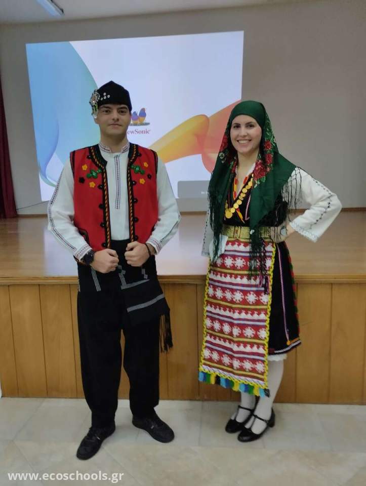 Μέσα στο πλαίσιο του προγράμματος Σχολικών Δραστηριοτήτων «Αειφόρο Σχολείο: Πολιτιστική Διαχείριση και Βιώσιμη Ανάπτυξη», οι μαθητές, την Παρασκευή 22 Δεκεμβρίου 2023, ενημερώθηκαν από τον Λαογραφικό Πολιτιστικό Σύλλογο Τυχερού «Άγιος Ιωάννης ο Πρόδρομος» για τις παραδοσιακές φορεσιές και τα έθιμα του Αγίου Δωδεκαημέρου των Χριστουγέννων. Σκοπός της δράσης ήταν η γνωριμία με την τοπική παραδοσιακή ενδυμασία και τις ιδιαιτερότητές της ως ένα σύνθετο σημειολογικό πορτρέτο, καθώς κρίνεται σημαντική από τις μελλοντικές γενιές η διατήρηση και αξιοποίηση του παραδοσιακού ενδύματος ως στοιχείου πολιτισμού. Παράλληλα, ο Σύλλογος μας παρουσίασε το αρβανίτικο έθιμο «Τσι Τσι, Κολιαντρί» και έθιμο της Κορτοπούλας από την περιοχή του Φυλακτού μέσα από τις προφορικές μαρτυρίες και τις μνήμες των κατοίκων.