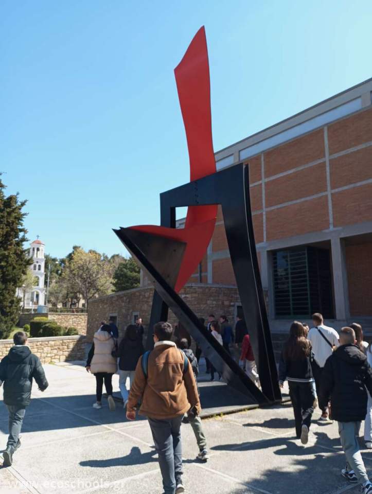 Το Μουσείο Βυζαντινού Πολιτισμού στη Θεσσαλονίκη επισκέφτηκαν την Πέμπτη 21 Μαρτίου 2024 οι μαθητές της Β΄ τάξης του 10ου Γυμνασίου Βόλου στο πλαίσιο του μαθήματος της Βυζαντινής Ιστορίας. Με την περιήγηση στις έντεκα αίθουσες του Μουσείου οι μαθητές είχαν την ευκαιρία να θαυμάσουν την αρχιτεκτονική και τη διακόσμηση των εκκλησιών τους πρώτους αιώνες του Χριστιανισμού, την “Παλαιοχριστιανική πόλη και κατοικία”, όπου παρουσιάζονται όψεις της οικονομικής ζωής, της κατοικίας και του εξοπλισμού της, όπως επίσης η οικοτεχνία και στοιχεία για την ένδυση και τη διατροφή, την ταφή των νεκρών και των κοιμητηρίων της παλαιοχριστιανικής Θεσσαλονίκης (4ος-7ος αι. μ.Χ, να θαυμάσουν τον πολιτισμό της μεσοβυζαντινής περιόδου (8ος-12ος αι. μ.Χ.), στη διάρκεια της οποίας η βυζαντινή αυτοκρατορία έφθασε σε μεγάλη πνευματική και καλλιτεχνική ακμή.