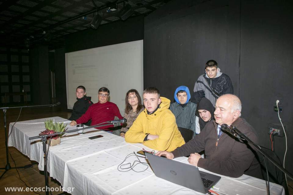 Βασικός ομιλητής ήταν ο Κος Παπαδόπουλος Κίμων , Μηχανολόγος Μηχανικός και ειδικός Σύμβουλος της Περιφέρειας Ανατολικής Μακεδονίας και Θράκης σε θέματα Περιβάλλοντος, Υποδομών και Μεταφορών , ο οποίος μίλησε στους μαθητές για το αποτύπωμα άνθρακα και τους δίδαξε τρόπους μείωσης του ατομικού τους αποτυπώματος.