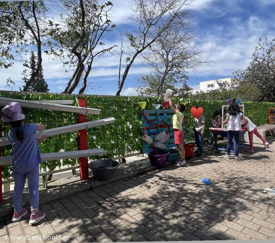- Νερομπερδέματα: Κατασκευή Τοίχων Δράσης με θέμα το νερό: πειράματα νερού, διαδρομές νερού σε παλέτες με σωλήνες αποχέτευσης και σωλήνες air condition.