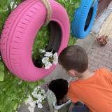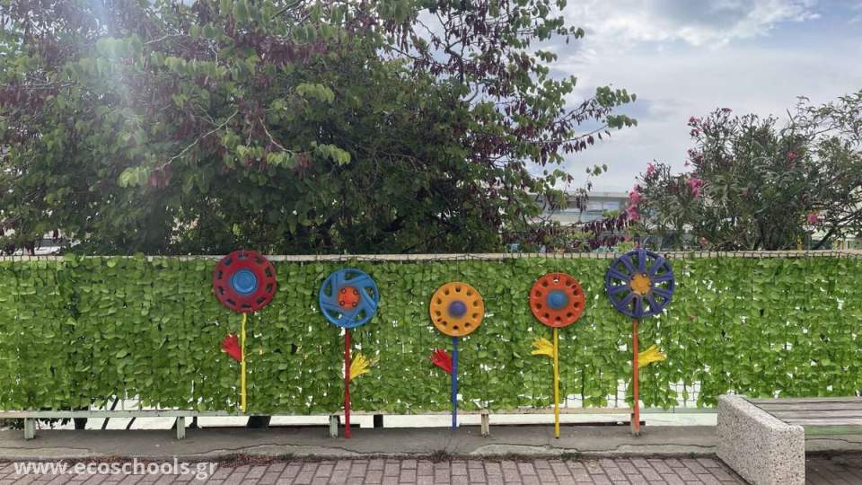 - Φύτευση εποχιακών λουλουδιών σε διάφορες γλάστρες από ανακυκλώσιμα και όχι μόνο υλικά. Επιπλέον φυτεύτηκαν νέα λαχανικά στο σχολικό μας κήπο όπως κολοκυθάκια, ντοματίνια, αγγουράκια, φράουλες.